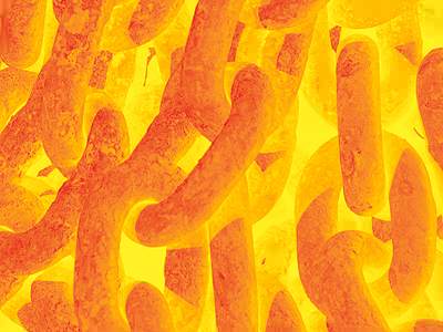 Chain links glowing red hot.