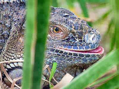 Iguana hiding in foliage.