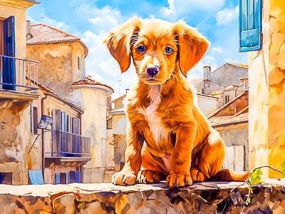 Solve times for this jigsaw puzzlePhotoPuppy sitting a on stone wall in an old stone village in France. Small brown dog with big flappy ears Share this Jigsaw Puzzle | ||