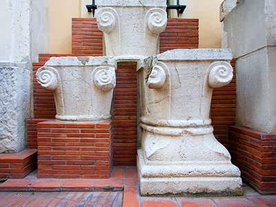 Ancient columns tops on a brick plinth.