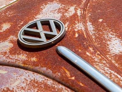 Rusty Volkswagen bug badge logo.